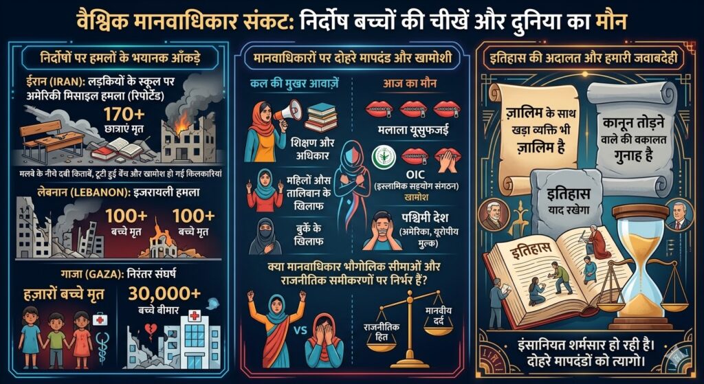 इस पूरे विवाद में सबसे बड़ा सवाल मानवाधिकारों के दोहरे मापदंडों का है। एक तरफ जहाँ तालिबान द्वारा महिलाओं की शिक्षा रोकने पर वैश्विक आक्रोश फैलता है, वहीं अमेरिका द्वारा कथित तौर पर एक स्कूल को निशाना बनाए जाने और 170 छात्राओं की जान जाने पर मानवाधिकार संगठनों की चुप्पी खटकने वाली है।