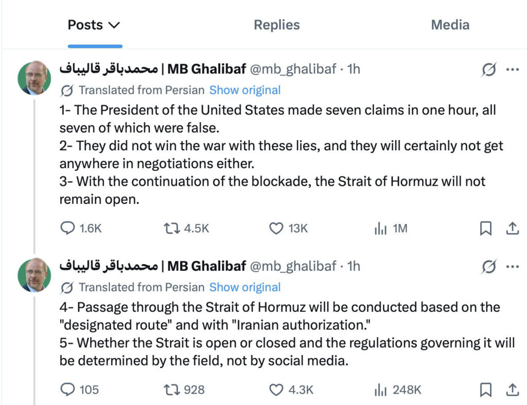 वाशिंगटन में पत्रकारों से बात करते हुए राष्ट्रपति ट्रंप ने कहा कि ईरान इस अहम जलमार्ग को बंद करके अमेरिका को डराने की कोशिश कर रहा है। उन्होंने माना कि दोनों देशों के बीच बातचीत चल रही है, लेकिन ईरान का यह अड़ियल रुख स्वीकार्य नहीं है। ट्रंप ने दोहराया कि जब तक कोई ठोस समझौता नहीं हो जाता, ईरानी बंदरगाहों पर नौसैनिक नाकेबंदी जारी रहेगी। उन्होंने कहा कि अमेरिका अपनी शर्तों पर पीछे नहीं हटेगा।