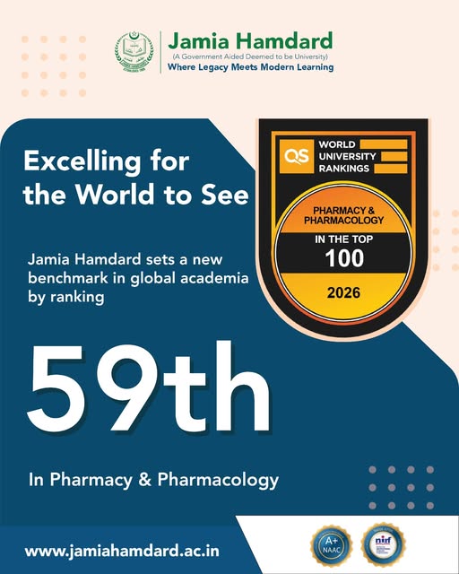 इस बड़ी कामयाबी की जानकारी जामिया हमदर्द ने अपने आधिकारिक सोशल मीडिया हैंडल के जरिए साझा की है। विश्वविद्यालय ने अपनी पोस्ट में गर्व के साथ लिखा— “जामिया हमदर्द: जहाँ विरासत आधुनिक शिक्षा से मिलती है।” संस्थान ने इसे अपनी कड़ी मेहनत और शोध (Research) के प्रति समर्पण का परिणाम बताया है।