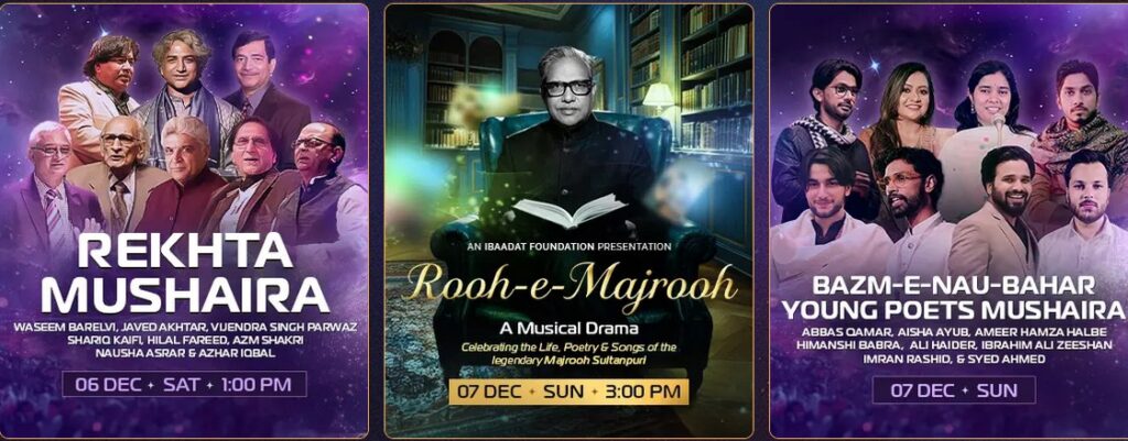 रेख़्ता फ़ाउंडेशन ने इस वर्ष भी दिल्ली के बांसेरा पार्क में तीन दिवसीय भव्य कार्यक्रम (05 से 07 दिसंबर) का आयोजन किया है। 06 दिसंबर, शनिवार का दिन विशेष रूप से महत्वपूर्ण है, क्योंकि इसी दिन दोपहर 1:00 बजे ‘रेख़्ता मुशायरा’ का आयोजन है, जिसमें वसीम बरेलवी और जावेद अख़्तर मंच की शोभा बढ़ाएंगे। इसके अतिरिक्त, इसी दिन शाम 3:30 बजे दानिश हुसैन द्वारा ‘दास्तान – उर्दू है जिसका नाम: द लैंग्वेज ऑफ़ लव एंड रिवोल्यूशन’ की प्रस्तुति भी है।
