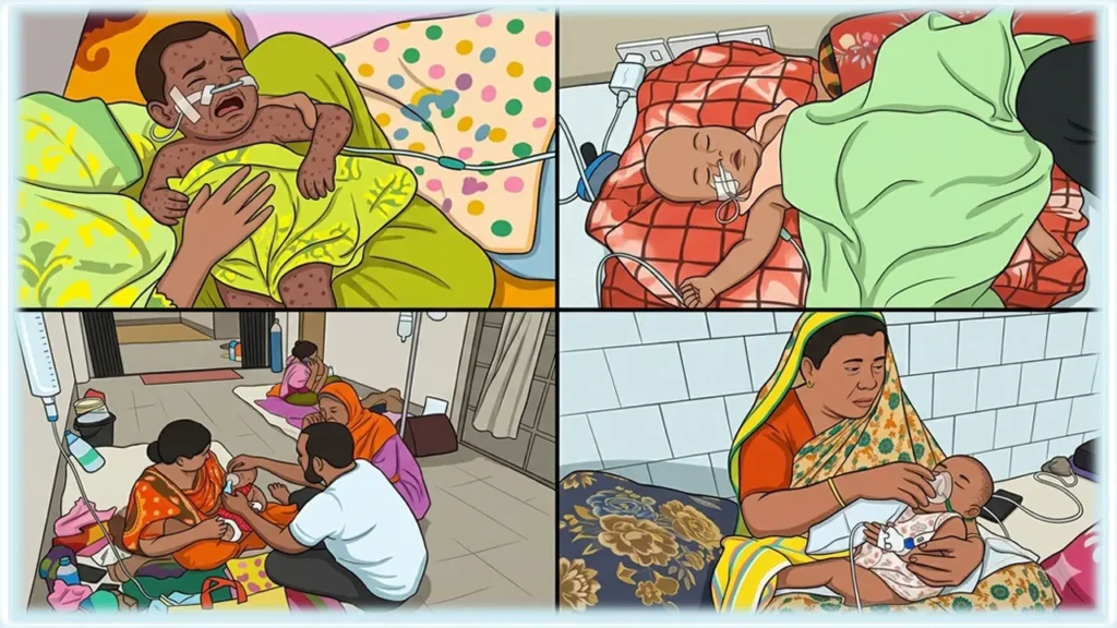 बांग्लादेश में खसरे का कोहराम: अस्पतालों में सांसों की जंग लड़ रहे मासूम, बेबस मां-बाप और आईसीयू का भारी संकट