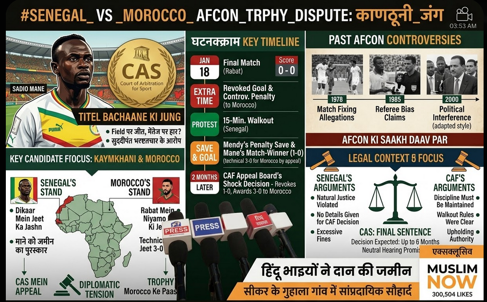 फुटबॉल की दुनिया में ‘अनिश्चितता’ शब्द का प्रयोग अक्सर खेल के अंतिम मिनटों के लिए किया जाता है, लेकिन अफ्रीका कप ऑफ नेशंस (AFCON) के मौजूदा विवाद ने इस परिभाषा को ही बदल दिया है। मैदान पर पसीना बहाकर ट्रॉफी जीतने वाली सादियो माने की कप्तानी वाली सेनेगल की टीम आज अपने ही खिताब को बचाने के लिए खेल जगत की सर्वोच्च अदालत, खेल मध्यस्थता न्यायालय (CAS) में कानूनी लड़ाई लड़ रही है।