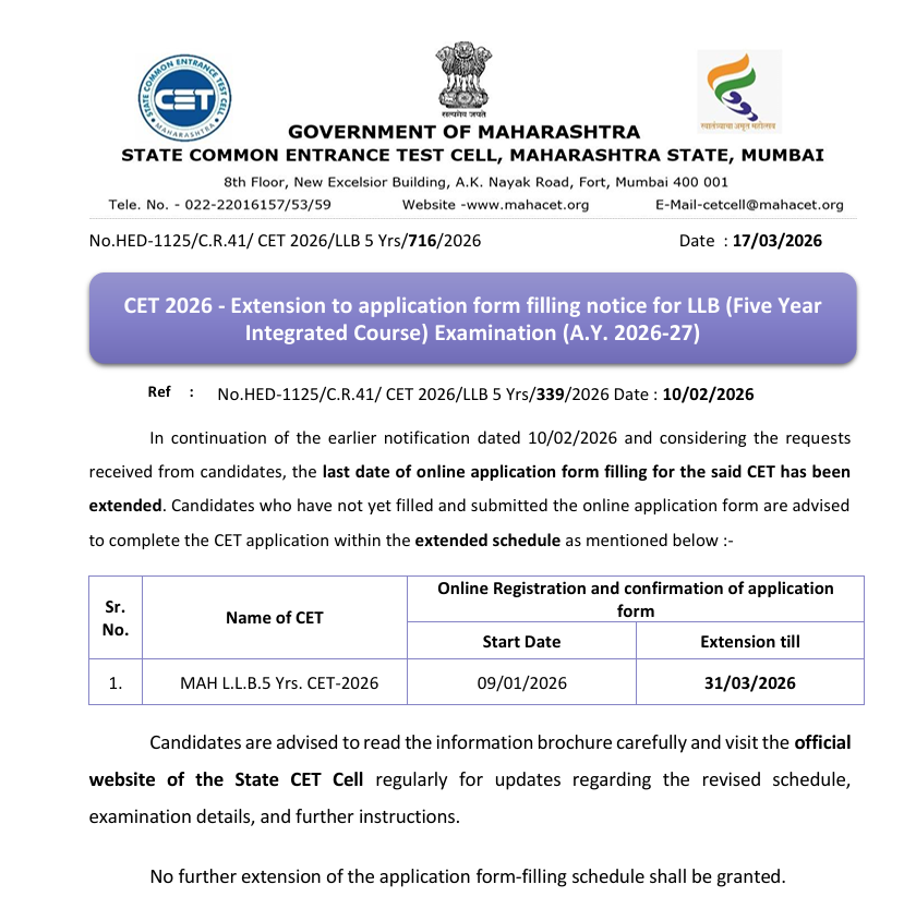 परीक्षा (MH CET): 8 मई 2026