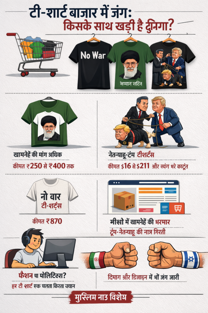 अगर आपको लगता है कि इजरायल और ईरान के बीच का युद्ध केवल लेबनान की पहाड़ियों या तेहरान के आसमान में लड़ा जा रहा है, तो आप गलत हैं। असली ‘वर्ल्ड वॉर’ तो इन दिनों मीशो, फ्लिपकार्ट और ई-बे (eBay) के ‘कार्ट’ (Cart) में छिड़ा हुआ है। यहाँ मिसाइलें नहीं, ‘कॉटन के धागे’ बरस रहे हैं और लोग अपनी विचारधारा को सीने पर नहीं, बल्कि टी-शर्ट के प्रिंट पर पहनकर घूम रहे हैं।