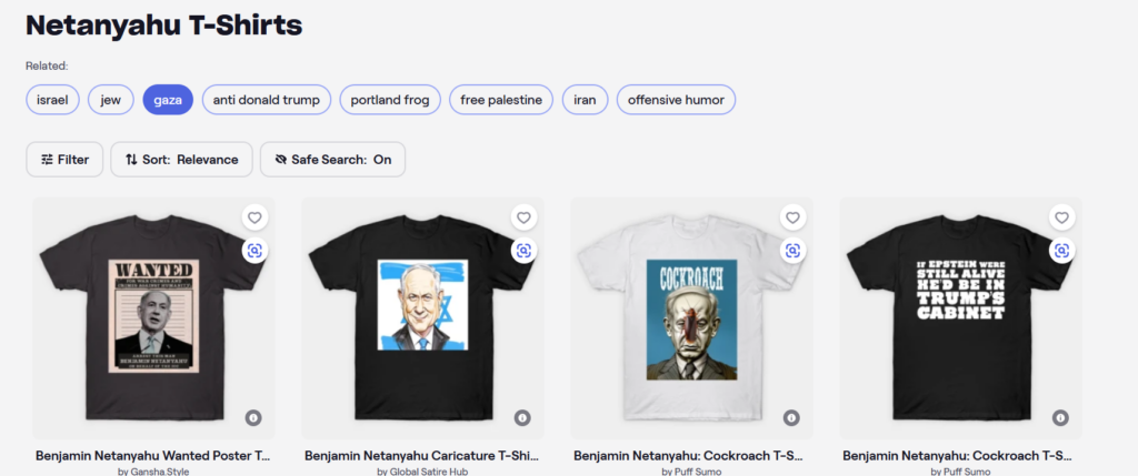 इन टी-शर्ट्स पर “काॅक्रोच नेतन्याहू“ और “वांटेड नेतन्याहू” जैसे भारी-भरकम स्लोगन दर्ज हैं। और कीमत? अपमान यहाँ सस्ता नहीं है। नेतन्याहू की खिल्ली उड़ाने वाली टी-शर्ट्स 16 से 21 डॉलर (लगभग 1300 से 1700 रुपये) के बीच बिक रही हैं। यानी लोग पैसा भी ज्यादा दे रहे हैं और वह भी सिर्फ इसलिए ताकि दुनिया को बता सकें कि वे इन नेताओं को ‘जोकर’ समझते हैं।