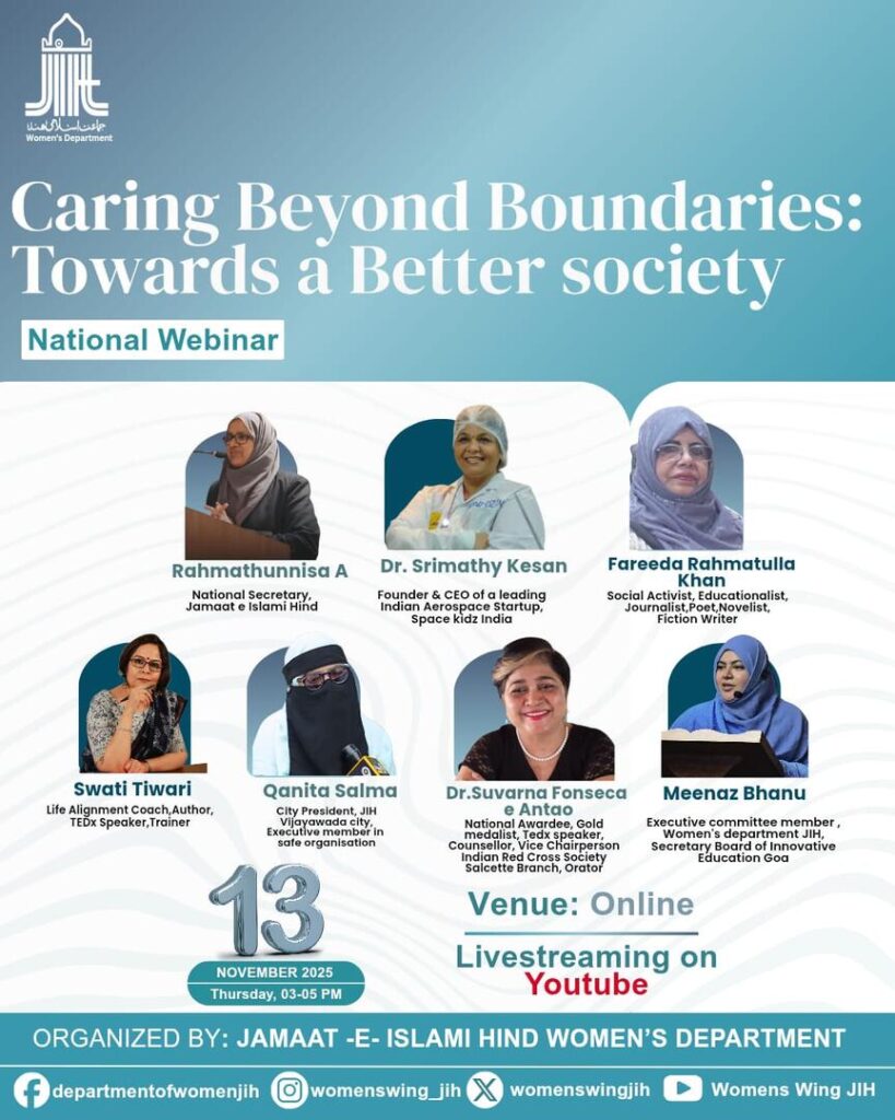 जमाअत-ए-इस्लामी हिंद के महिला विंग का राष्ट्रीय वेबिनार: “सीमाओं से परे देखभाल—एक बेहतर समाज की ओर”